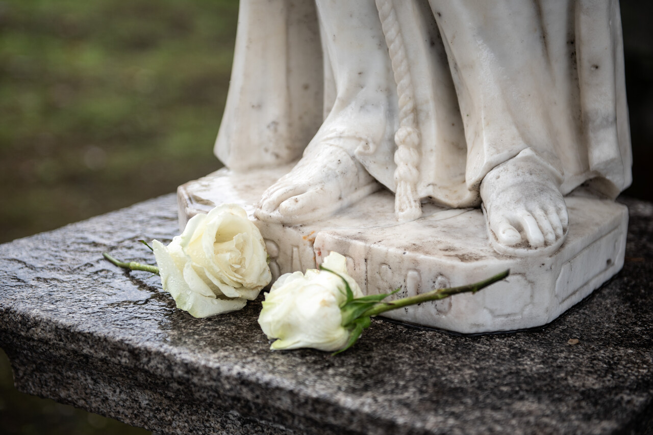- Pormenor do jazigo mandado erguer por Henriqueta da Conceição, com rosas frescas. (Fotografias de André Rolo/GI)
