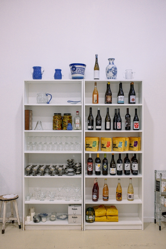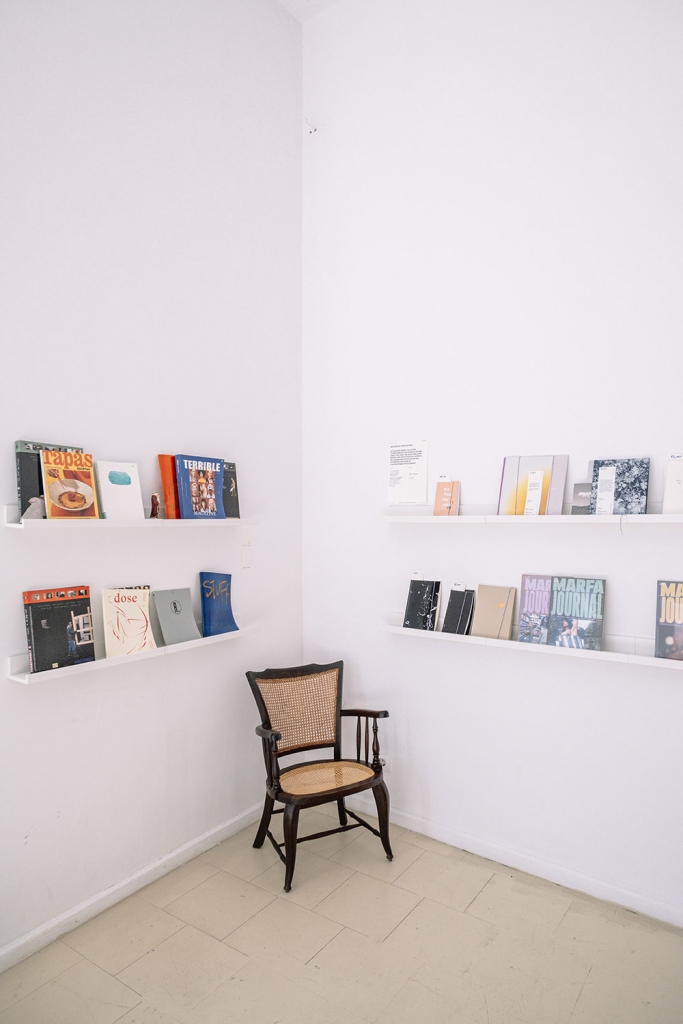 Na ampla sala priorizou-se a luz natural, que entra pela frente envidraçada, e reduziu-se a decoração ao essencial, com alguns apontamentos em azul-cobalto e vários objetos em segunda mão, como as cadeiras, os copos e os talheres. “Já temos tanta informação nas redes sociais e na vida que decidimos criar um espaço simples e limpo”, diz Matias. É neste ambiente visualmente calmo, embalado pela música que está sempre a tocar, que se servem sanduíches, conservas, petiscos e doces, cujas receitas são influenciadas pela herança italiana que corre nas famílias do casal argentino, originário de Buenos Aires.