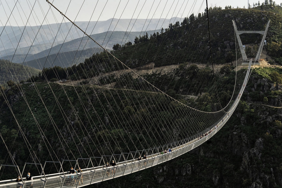 Ergue-se sobre a garganta do Paiva, com os seus 516 metros de comprimento e 175 metros de altura, e é apresentada como uma das maiores pontes pedonais suspensas do Mundo. A PONTE 516 AROUCA, que liga as freguesias de Alvarenga e Canelas/Espiunca, constitui a mais recente atração de uma terra que já estava no roteiro dos amantes da natureza. Foi inaugurada no mês passado, com lotação limitada, para que cada visitante possa apreciar a paisagem ao seu ritmo, sem confusões. O bilhete, a comprar online, com antecedência, também dá acesso aos Passadiços do Paiva.