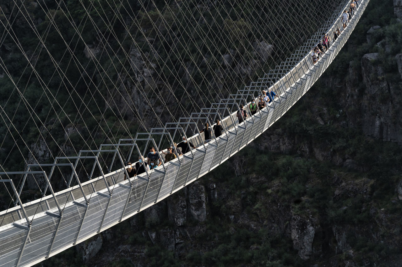 Ergue-se sobre a garganta do Paiva, com os seus 516 metros de comprimento e 175 metros de altura, e é apresentada como uma das maiores pontes pedonais suspensas do Mundo. A PONTE 516 AROUCA, que liga as freguesias de Alvarenga e Canelas/Espiunca, constitui a mais recente atração de uma terra que já estava no roteiro dos amantes da natureza. Foi inaugurada no mês passado, com lotação limitada, para que cada visitante possa apreciar a paisagem ao seu ritmo, sem confusões. O bilhete, a comprar online, com antecedência, também dá acesso aos Passadiços do Paiva.