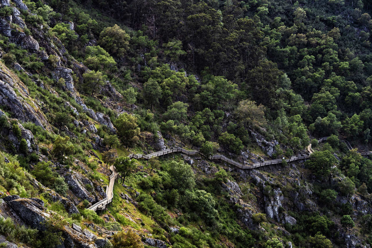 O acompanhamento é garantido naquela estrutura imponente, que oferece uma visão ímpar sobre o vale do Paiva. Mas quem quiser uma experiência mais completa pode contactar a JUST COME – COUNTRYSIDE & ADVENTURE TOURS, especializada no território do Arouca Geopark, correspondente aos limites administrativos do concelho e classificado pela UNESCO como Património Geológico da Humanidade. Ao todo, são 328 quilómetros quadrados, com 41 geossítios (locais de interesse geológico), entre eles a garganta do Paiva e a Cascata das Aguieiras, bem visíveis sob os nossos pés, durante a travessia.