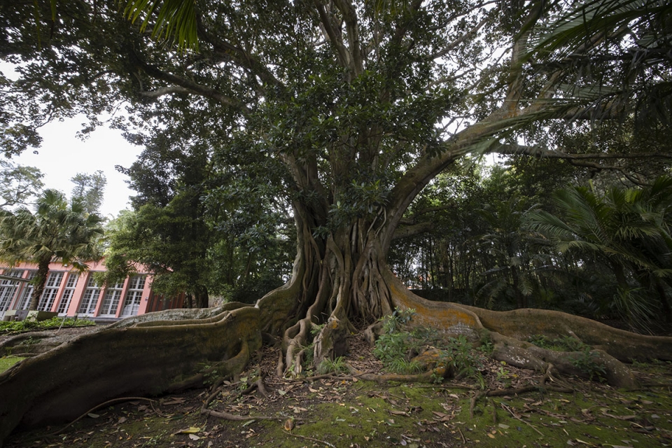 O espaço parece escondido por detrás dos muros de uma antiga quinta, no centro de Ponta Delgada, de propósito para que a descoberta seja mais surpreendente. Transposto o portão, as gigantes árvores da borracha enchem-nos de espanto – quando nos sentamos sobre uma da suas raízes recuamos à fábula de Gulliver, como se habitássemos Lilliput.