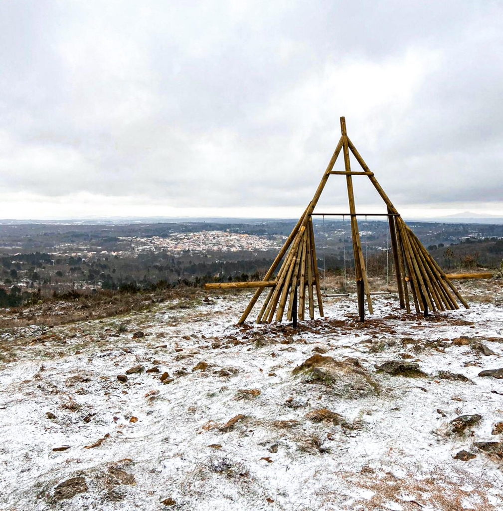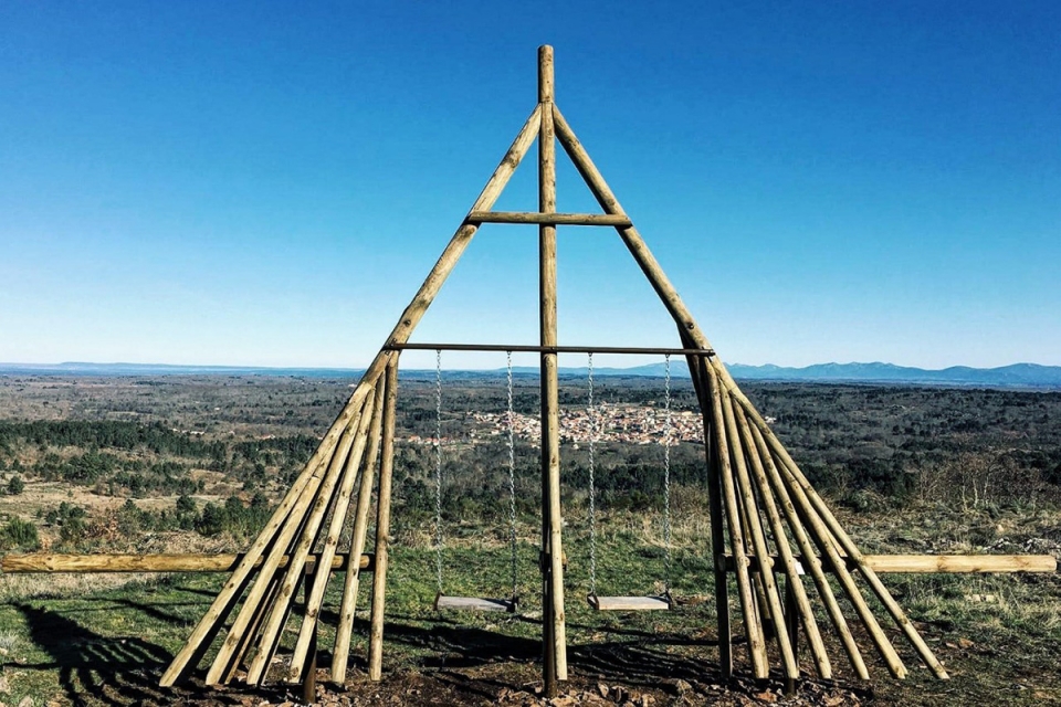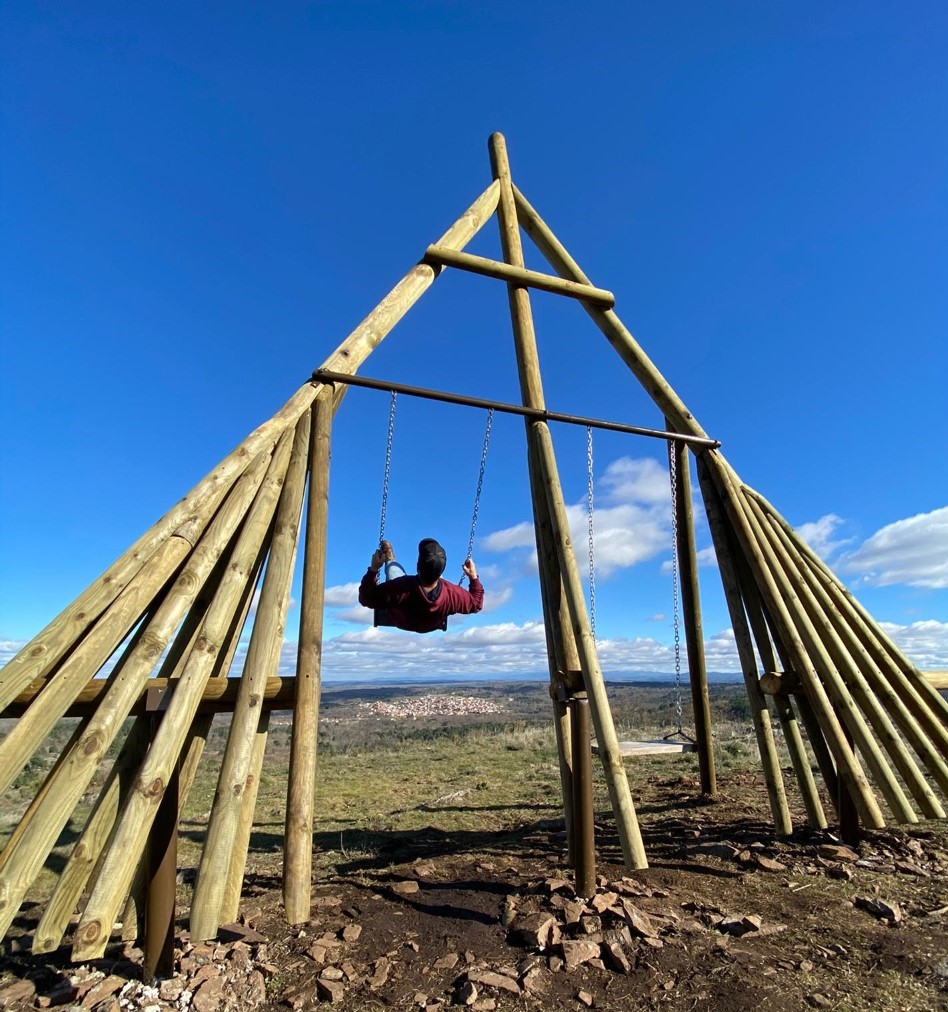 O novo baloiço da Aldeia Velha oferece uma vista panorâmica para Aldeia Velha e as aldeias vizinhas, para o vale que abraça a Guarda e para as serras fronteiriças que se estendem da Serra da Estrela até Espanha. Mas a largueza da paisagem que dele se alcança com o olhar não é o único atrativo. O próprio formato marca a diferença, ou não tivesse sido inspirado no forcão, um instrumento de madeira essencial na Capeia Arraiana, a principal tradição da região.