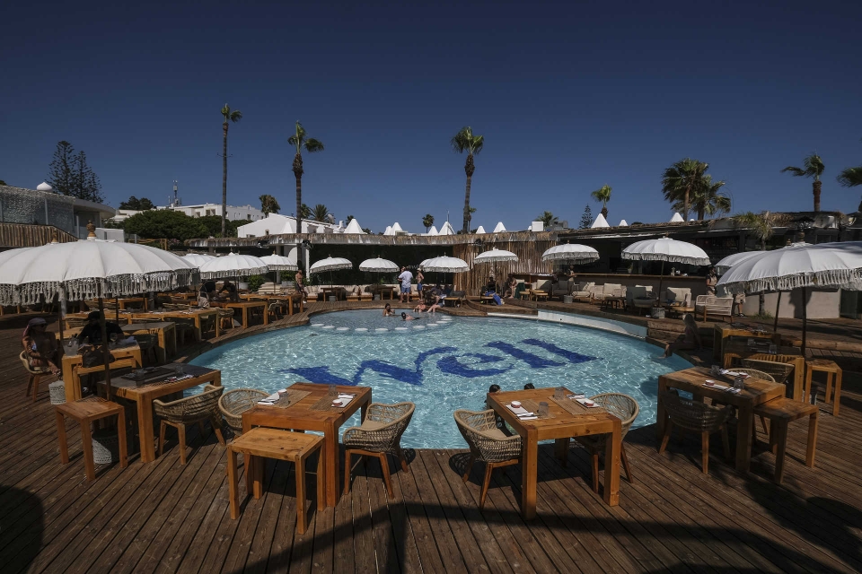 Em cima, o Well Beach Club, com entrada paga, orbita em torno de duas piscinas. Esta zona serve apenas almoços, mas permite alugar camas balinesas e banhos de jacúzi, ou receber massagens tailandesas. Na concessão de praia, há motas de água para alugar. Comum a todos os espaços são as bebidas, tanto cocktails clássicos ou de autor, como sumos naturais, smoothies ou sangrias.