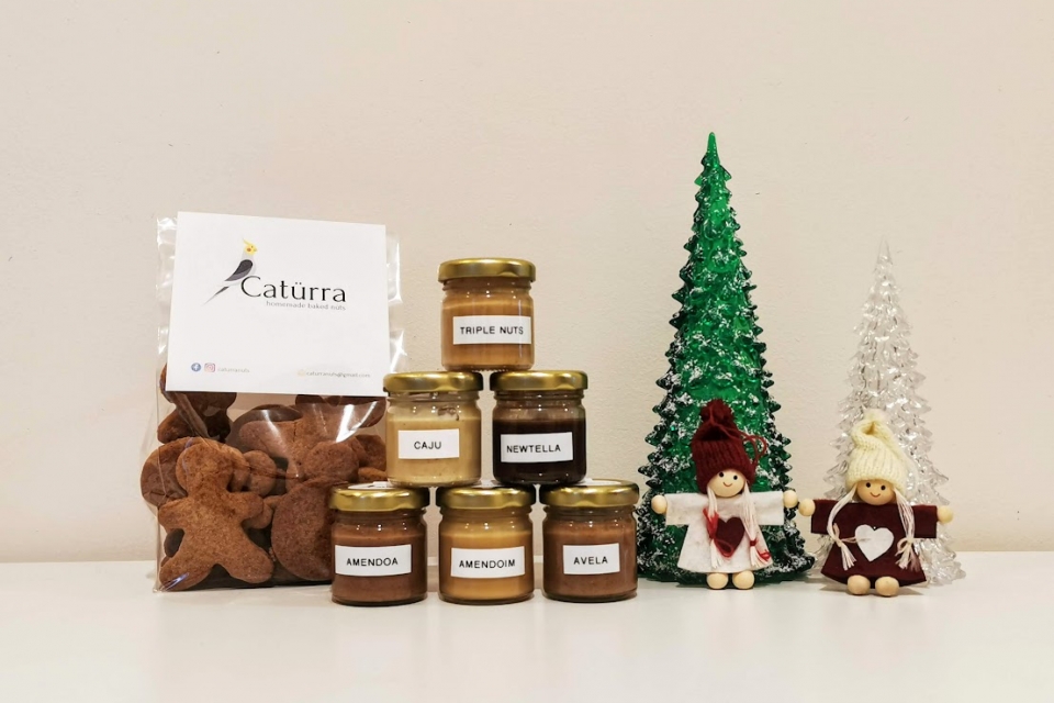 Na busca por uma alimentação mais natural, Joana Azevedo começou a fazer manteigas de frutos secos e granolas para consumo próprio e para dar aos mais próximos – que a convenceram a vender para fora. Desde então, esses e outros produtos feitos artesanalmente, com ingredientes naturais, saem da sua cozinha, em Vila Nova de Famalicão, para todo o país, sob a etiqueta Catürra. Há pacotes de Natal, e ainda opções vegan, sem glúten ou adequadas a diabéticos. CF