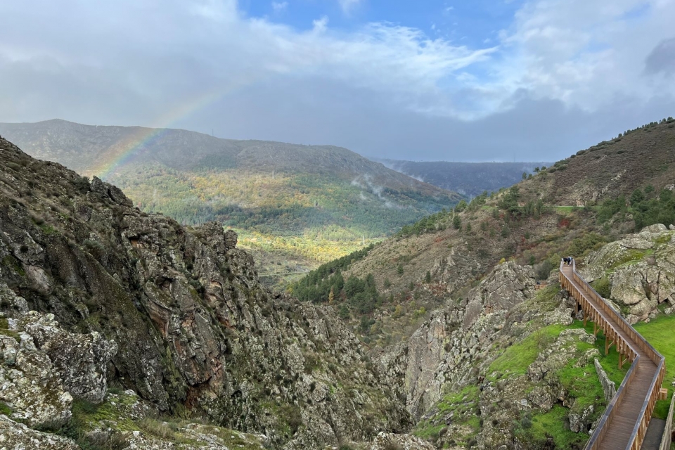 A brincar a brincar, estão ali 11,7 quilómetros de um percurso que mistura cinco quilómetros de caminhos já existentes, sete de passadiços, três pontes suspensas e um desnível acumulado de 600 metros. Pouco, tendo em conta a enormidade de tudo o que se consegue testemunhar percorrendo o silêncio do trilho, entre geossítios assinalados no Estrela Geopark Mundial da UNESCO, uma fauna viva, as inexplicáveis cores da flora e cadáveres de “engenhos” que eram fábricas têxteis ou de eletricidade movidas pela força do Mondego. É muito. E é, sobretudo, penetrar numa paisagem de sonho, mormente se, como nós, forem abençoado pelos jogos do nevoeiro.
