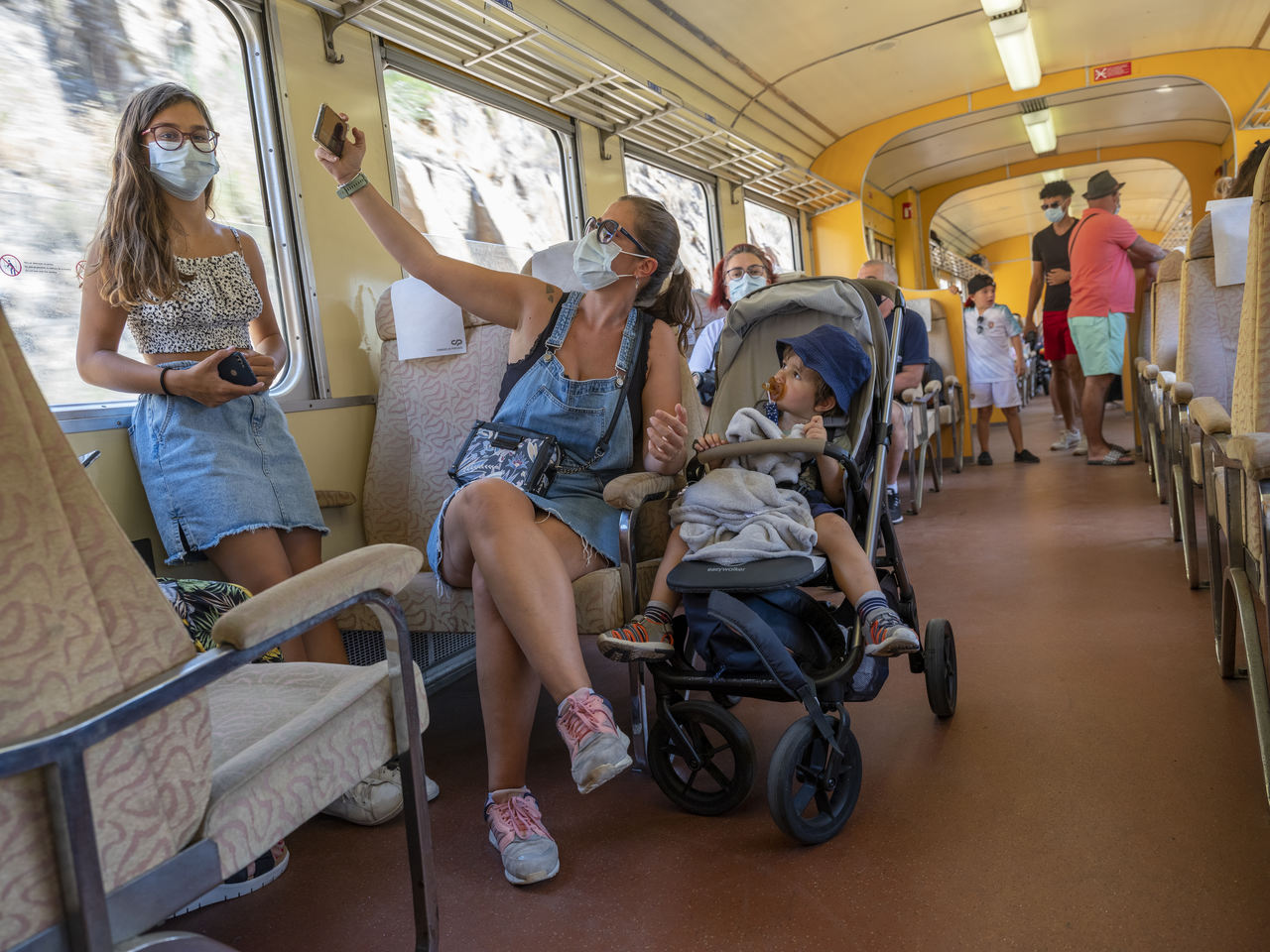 Parte do charme da viagem reside no próprio comboio. O MiraDouro é composto pela locomotiva diesel da série 1400 e por carruagens Schindler, produzidas nos anos 1940 pela fabricante suíça homónima, integradas na rede ferroviária nacional entre 1949 e 1977 e entretanto recuperadas. Têm uma ambiência vintage, casas de banho e janelas panorâmicas que podem ser abertas, para alegria de quem visita a mais antiga região vitícola demarcada e regulamentada do Mundo. É o caso de Luís Paulino, 62 anos, que aviva as memórias da juventude num passeio com a família: “Somos da aldeia [Lavandeira, Carrazeda de Ansiães], este era o nosso transporte, antigamente. Quantas vezes a gente fez a viagem do princípio ao fim, sempre de pé, sempre à porta, e a saltar para ir beber um sumo às estações, a correr!”.