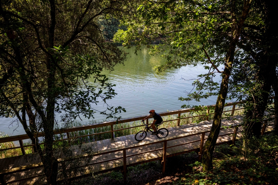 O Trilho Verde da Marginal, em torno da albufeira da barragem de Queimadela (PR4 Fafe), na versão mais curta, sem subir às aldeias, é um ótimo passeio de bicicleta para iniciados no BTT ou para pais que pretendam introduzir os filhos na modalidade. A maior parte do percurso é plano e há dois longos troços em passadiços largos, onde pessoas e bicicletas podem conviver. Na margem norte, o caminho é por uma estrada de terra batida sombreada por carvalhos e pinheiros. Para os mais treinados, há muitos trilhos de BTT que partem deste ponto, desde logo a versão mais longa do PR4, com a subida às aldeias do Repulo e do Pontido. Apesar de ser tecnicamente fácil, este percurso deve ser feito com bicicleta de BTT.