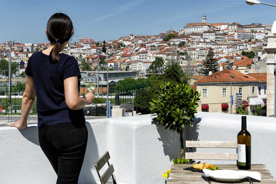 Daquela varanda, que, pela forma, lembra uma proa de navio, avista-se desde o vizinho Convento São Francisco ou o também próximo estádio universitário até ao postal mais célebre de Coimbra: o aglomerado de casas com a Torre da Universidade lá no cimo, já do outro lado do rio.
