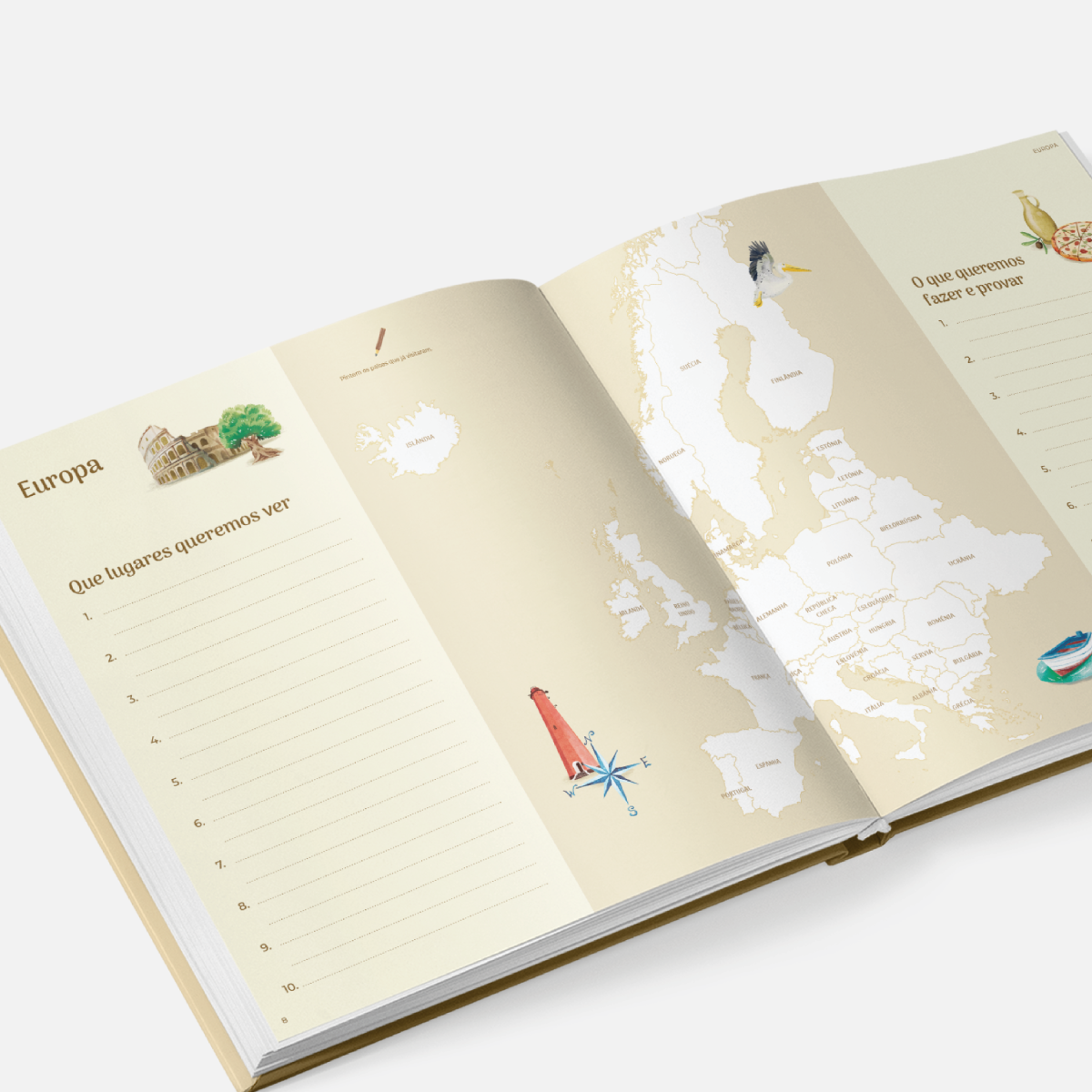 A publicação apresenta uma capa dura, encadernação de qualidade e papel de alta gramagem, numa tentativa de o tornar resistente à passagem do tempo. Ao longo das suas 128 páginas, encontram-se três capítulos: dois grandes blocos chamados “Europa” e “Mundo”, e um mais pequeno destinado a “Outras Viagens”. Os dois capítulos principais estão desenhados de forma semelhante, com mapas dos países ou dos continentes, textos introdutórios sobre os mesmos, ilustrações de animais e especialidades gastronómicas típicas, e diversas listas para preencher (“quem participou da viagem”, “como estava o tempo”, “que especialidades provámos”, “o que vimos de interessante”).