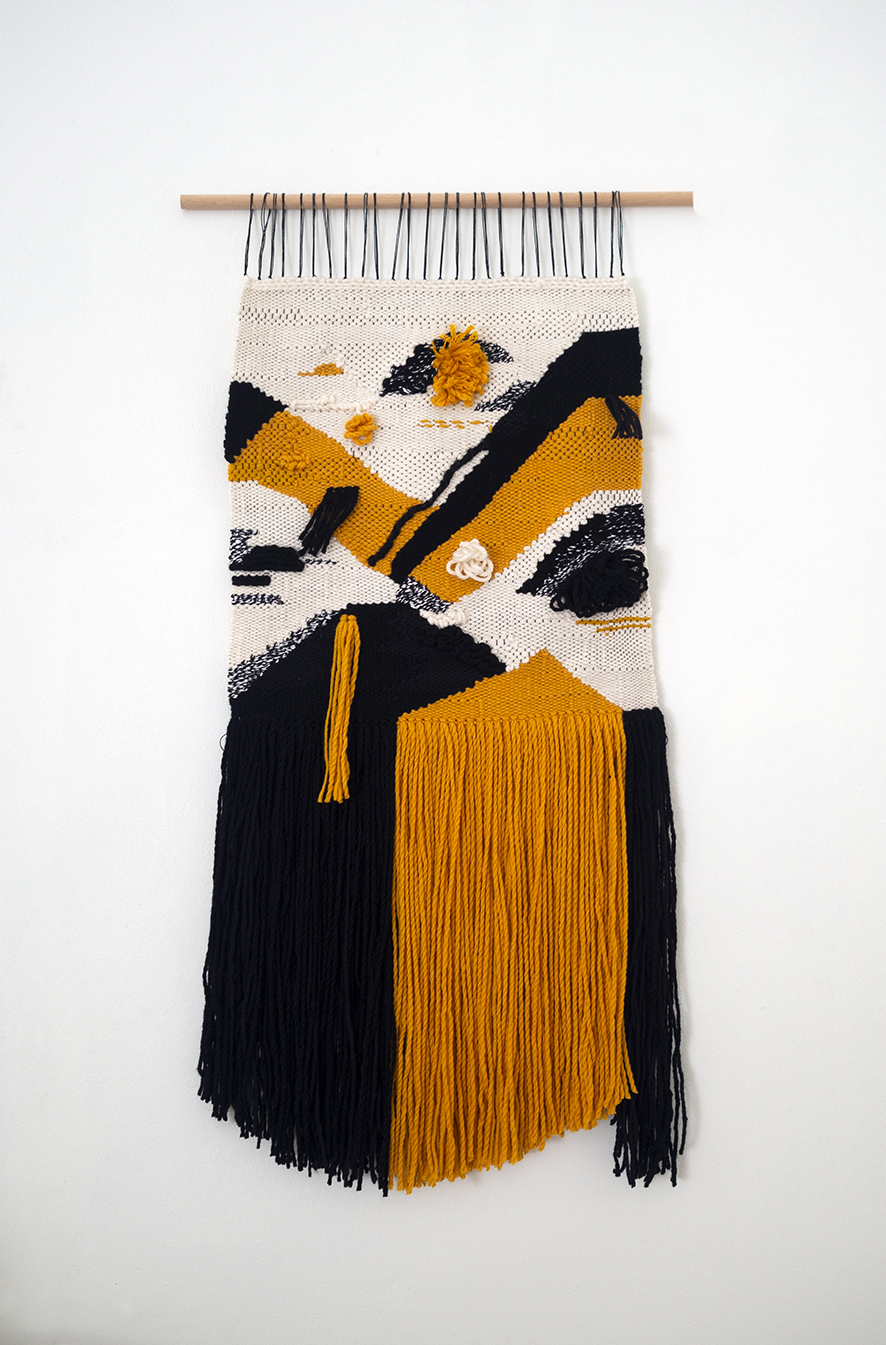 São peças feitas com fios de lã e algodão, uma delas nascida durante o confinamento, outras criadas já a pensar nas paredes da galeria – e das casas, pois podem ser encaradas como objetos de decoração, além de obras de arte. Todas vão estar à venda, por valores ainda a definir.