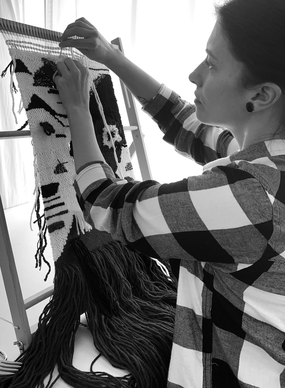 Ao longo do seu trajeto profissional, a autora – com trabalhos publicados na Notícias Magazine e na Evasões – tem procurado uma abordagem manual, sempre que possível. Por norma, recorre a diversas técnicas de colagem e desenho. A tapeçaria ressurgiu na sua vida porque sentiu saudades dessas práticas que desde miúda lhe eram familiares.
