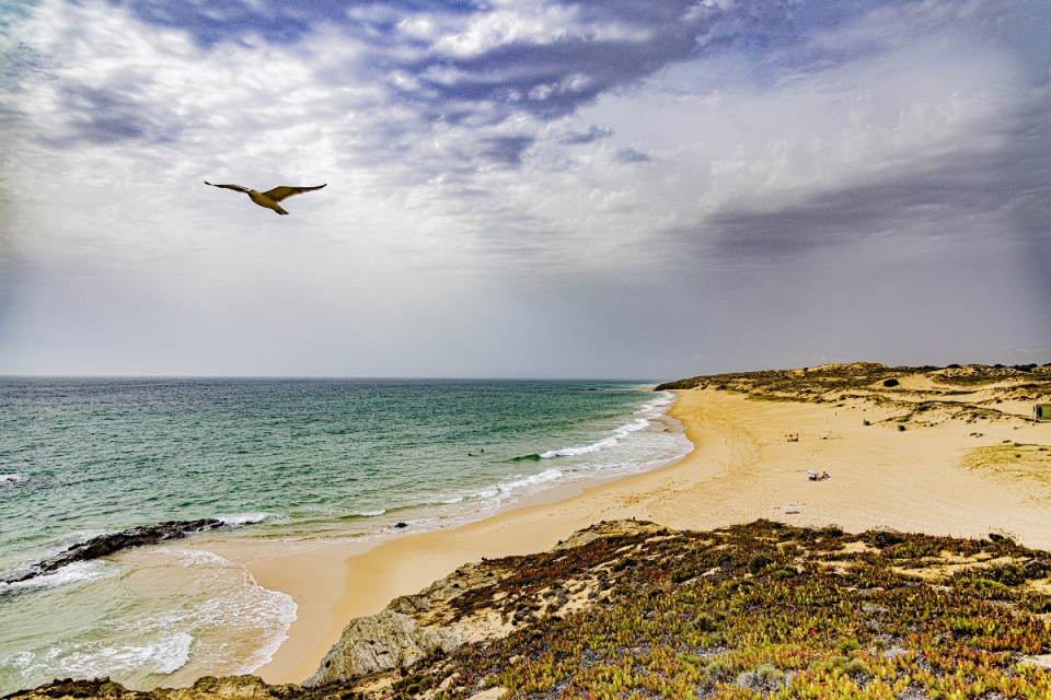 O típico cenário selvagem e as arribas do Parque Natural do Sudoeste Alentejano e Costa Vicentina ajudam a emoldurar este destino de banhistas, mas também o cordão dunar que desagua no areal. E apesar da grande procura, a amplitude da praia permite que se consiga estender com facilidade a toalha, quer nas zonas mais movimentadas, tanto por veraneantes como por surfistas atraídos pela ondulação do mar, quer na parte mais a norte, frequentada habitualmente por naturistas – certificação que ganhou há três anos.
