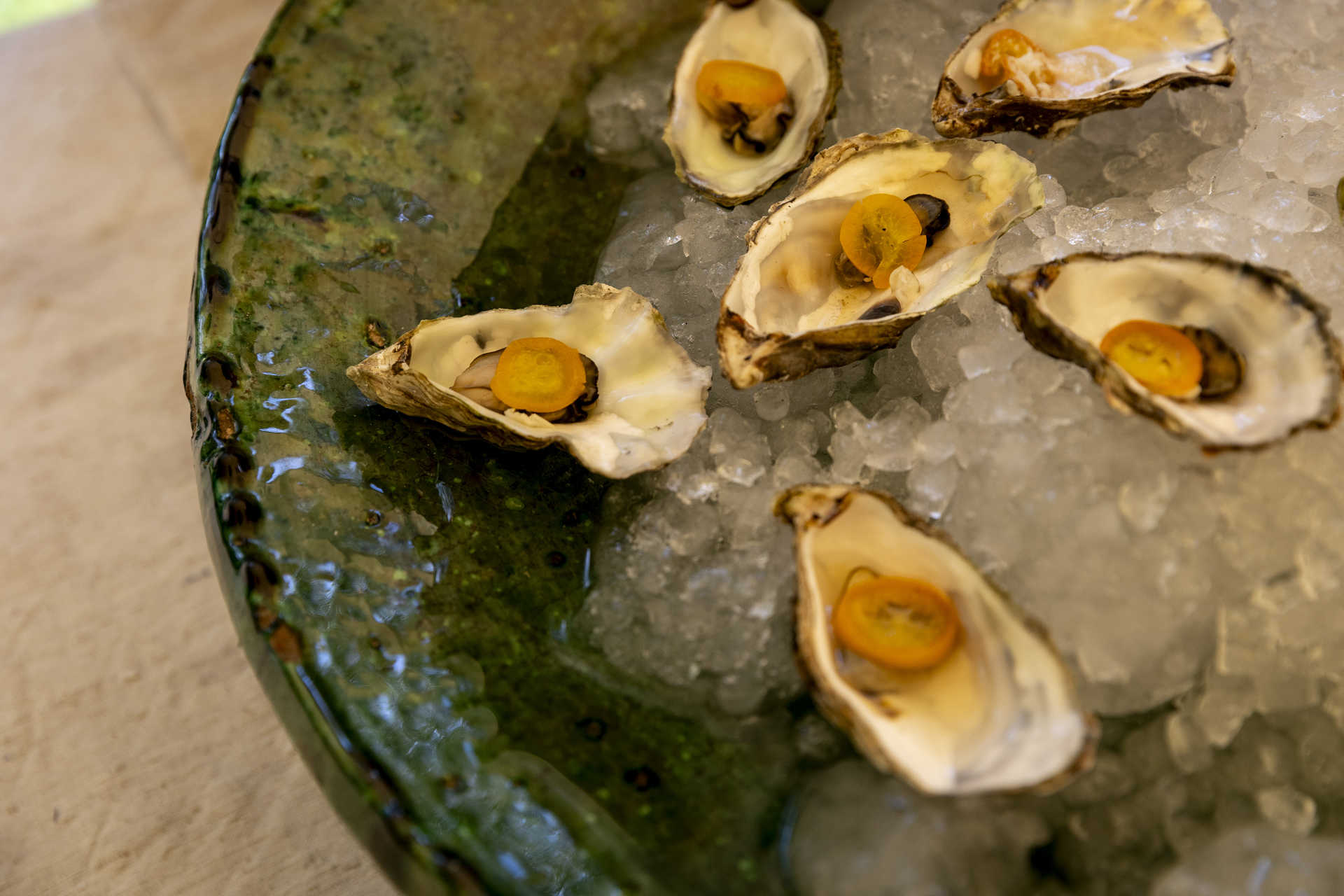 - Ostras na zona reservada à marca Villa Alvor (Algarve) e vinhos verdes na Varanda do Roseiral, da Aveleda. (Fotografias de Carlos Carneiro/GI)