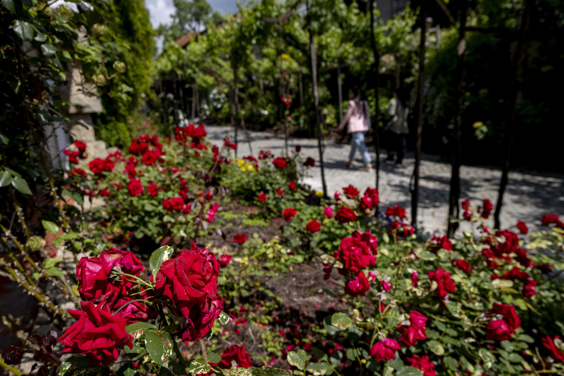 - A Fonte das Quatro Irmãs e, à direita, um dos roseirais. (Fotografias de Carlos Carneiro/GI)
