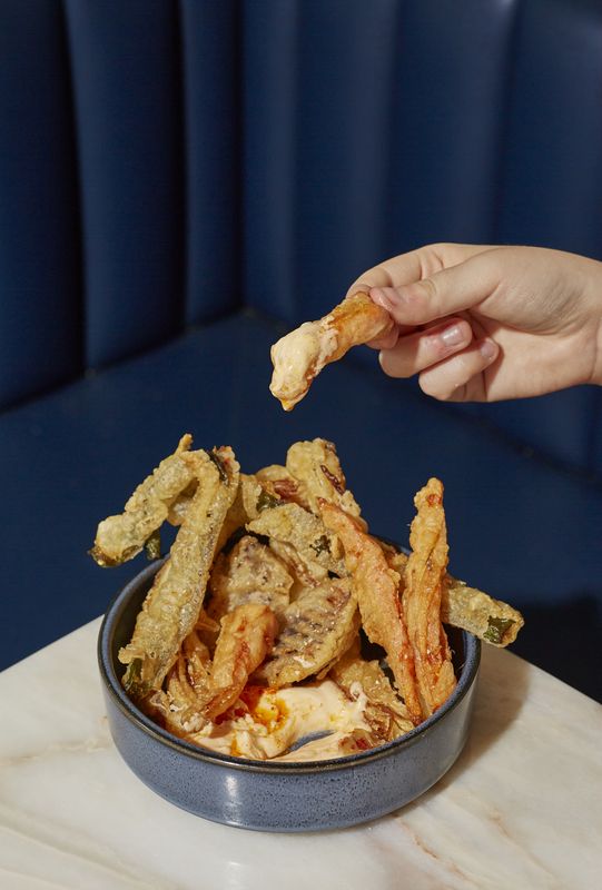 Continuando a descer a estrada até Setúbal, chega-se facilmente ao restaurante PEIXOCO, na Doca dos Pescadores. Foi aqui que o casal luso-francês André Lucas e Constance Bauer criou esta homenagem à faina, abordando o receituário setubalense de forma moderna e criativa. A propósito da data festiva, a dupla adicionou três pratos à carta. De entrada, pipoca de peixe com molho agridoce; como prato principal, carapau frito com tarte de batata, ovas de truta, pepino e maçã verde; e para finalizar creme de chocolate branco com manga, lima e coentros.