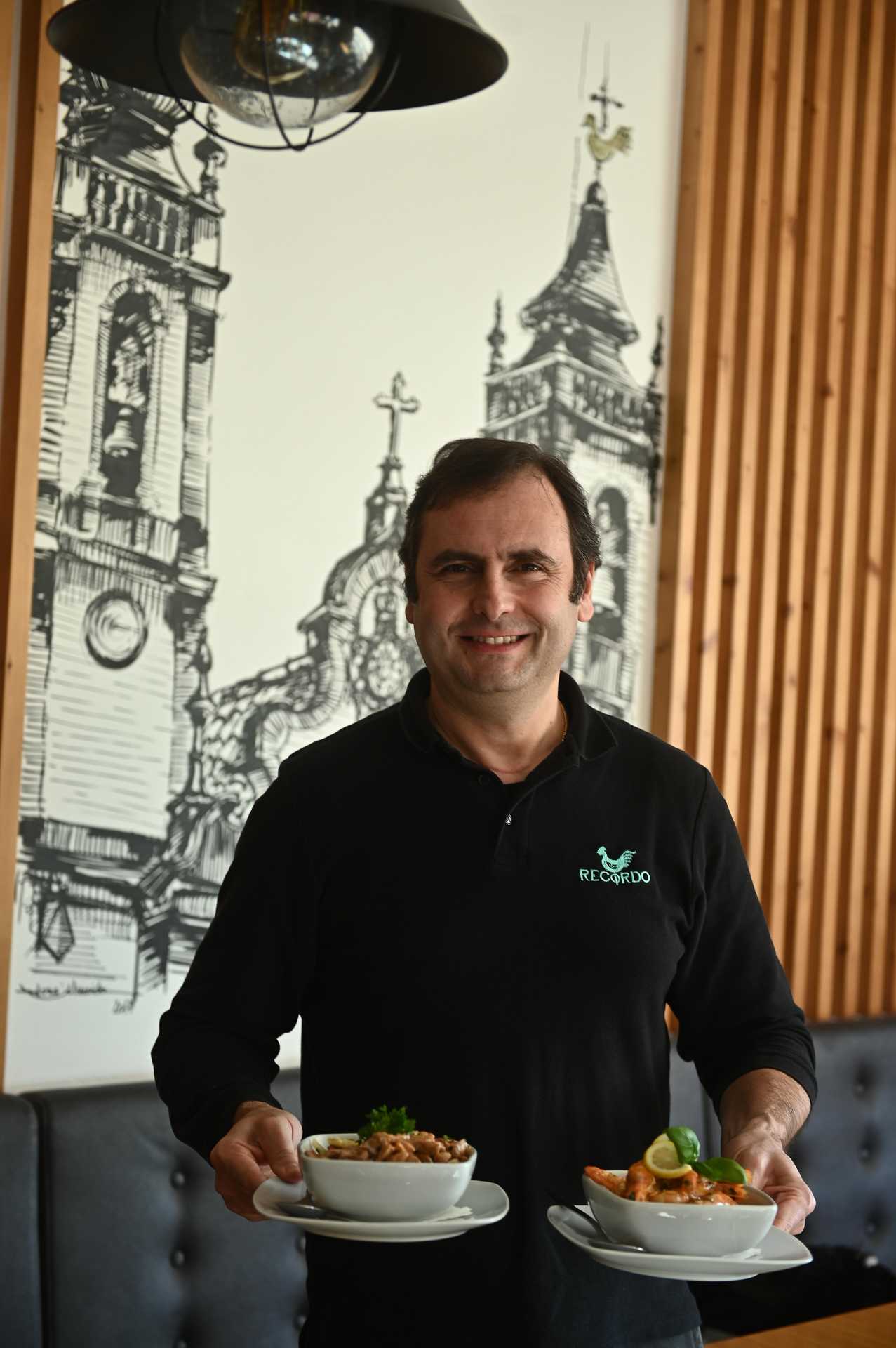 “Gosto muito deste sítio, é diferente dos outros”, resume António Ferreira, elogiando a comida, a apresentação e a simpatia do pessoal do restaurante Recordo, aberto há pouco mais de dois anos, com alguns antepassados na lembrança. João das Formas, artista da terra que deixou o seu toque nos altares da Misericórdia e em tetos da Casa da Ínsua, é retratado numa parede. E no balcão lê-se uma frase premonitória: “Nunca se esquece onde se foi feliz”.