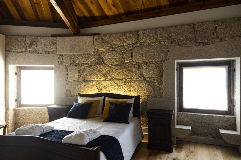 A reabilitação da propriedade resultou em dez suítes de ambiente clássico e frugal, divididas nas tipologias standard, superior e executiva. Todas elas estão providas de uma antecâmara que pode ser usada para lazer ou trabalho, tetos em madeira de austrália e mobiliário de época recuperado em pau-rosa e pau-santo. Fora delas, há várias áreas para descobrir. No restaurante, virado para o quinteiro e aberto também a passantes, aposta-se na cozinha tradicional portuguesa, de sabores apurados no forno a lenha, como o cabrito assado e o polvo à lagareiro, e em pratos com um empratamento mais irreverente, caso da perdiz e da codorniz.