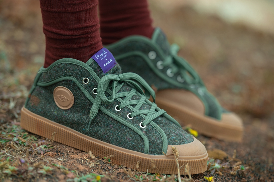 Geralmente usado como tecido para mantas, capas e samarras, o burel é agora também encontrado numa coleção de sapatilhas com a portuguesa Sanjo, que já se tinha associado à Sumol, ao IADE e à designer Alexandra Moura.