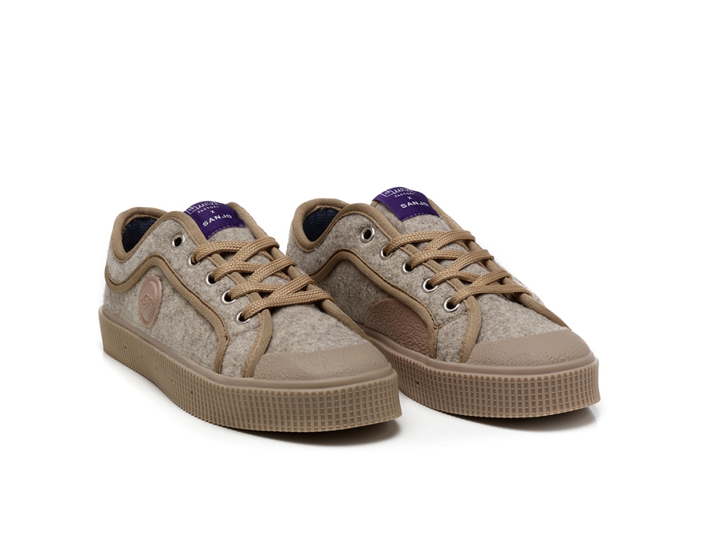 Geralmente usado como tecido para mantas, capas e samarras, o burel é agora também encontrado numa coleção de sapatilhas com a portuguesa Sanjo, que já se tinha associado à Sumol, ao IADE e à designer Alexandra Moura.