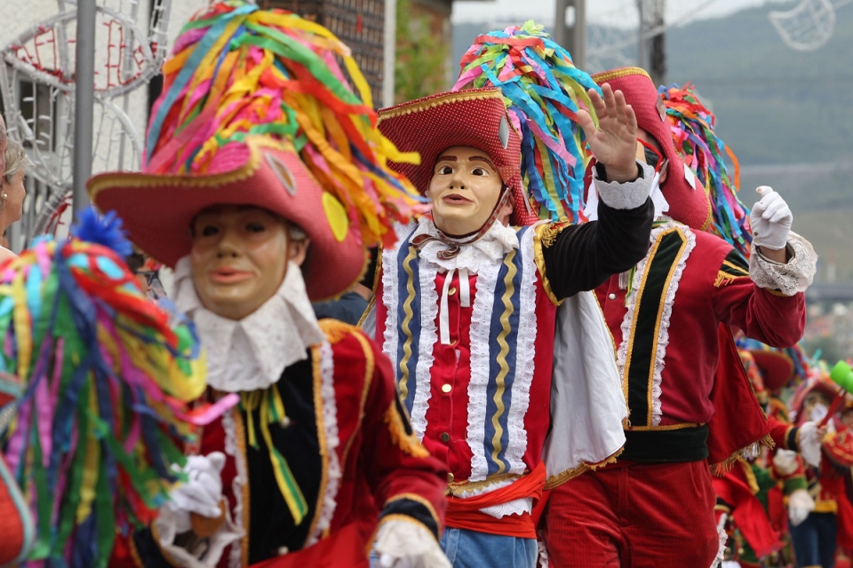 E é por isso que, ao longo dos vários momentos da festas, as centenas de bugios – homens e mulheres anónimos, mascarados com trajes e adornos coloridos – gritam “ela é nossa!”. Desde bem cedo que os grupos rivais realizam vários rituais, sem nunca de cruzarem, com a multidão a crescer para aquele que é a primeira grande aparição pública, entre muita música, a partir das 12h: as “Danças de Entrada”. Daí em diante, é toda uma festa de alegria, danças, sátira, caricatura e recriações etnográficas, com antigos costumes a serem encenados, com os bugios à mistura. “Isto não é uma festa de gala, é uma festa para ser vivida. E por isso, quem quiser antes saber mais sobre a festa, poderá perceber melhor o que está a acontecer. E deve vir com roupa e calçado confortável, para aproveitar bem o dia todo”, sugere António Marques.