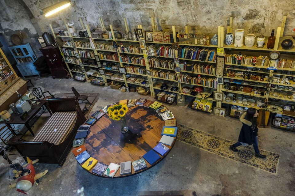 É preciso algum tempo para apreciar as centenas de objetos antigos que recheiam o armazém, às vezes por pouco tempo. Há muitos artigos de campanha inglesa, malas de couro, livros, acessórios de moda, candeeiros e mobiliário mas, na verdade, (quase) tudo está à venda, até os bancos do bar. E é o bar, provavelmente, a zona mais acolhedora, aquecido pela lareira geométrica, revestida de espelhos, e onde várias línguas se juntam à volta das mesas comunitárias. Fatias de bolo, scones, saladas, tostas, conservas, chouriços e queijos reconfortam o estômago, e o vinho, que foi o impulsionador da construção do armazém, continua a estar presente, agora para ser provado ali mesmo, no meio de tantas histórias, quantas peças se veem.