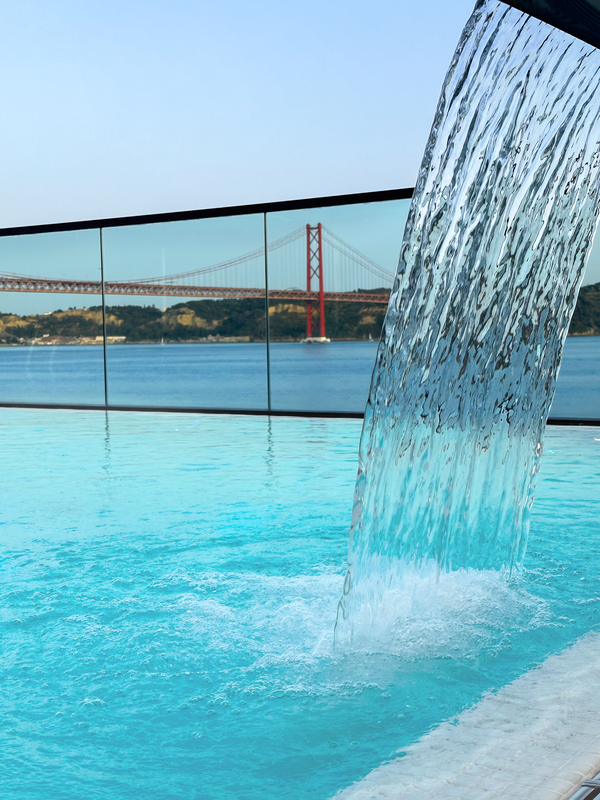 Eleita desde cedo o ex-líbris do projeto, graças à localização sobranceira ao rio e aos serviços de luxo acoplados, a piscina com 11 metros de comprimento e 1,50 metros de profundidade foi e continua a ser um dos lugares mais cobiçados. Em 2017, funcionava das 09h às 18h. Atualmente, o horário é das 10h às 18h (ou até às 21h ao domingo, para coincidir com o pôr do sol) e, pelo valor de 95 euros/pessoa, inclui momentos de snacks e bebidas disponibilizados às 11h30 e 16h, com direito a uma espreguiçadeira ou poltrona reservada em exclusivo.