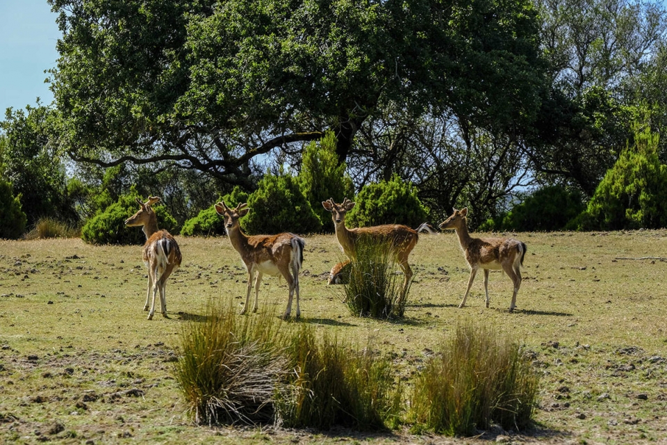 Com o tempo, as crias de gamo (cervídeo da mesma família do veado) têm-se habituado cada vez mais à presença dos humanos na floresta da tapada. A pé, são de mais difícil avistamento, mas as probabilidades aumentam quando a visita é feita num dos novos carros elétricos do parque.