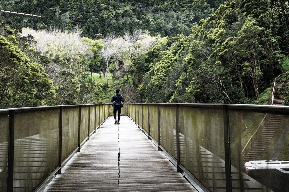Esta mancha de um verde luxuriante há-de guiar-nos ao interior da Furna do Enxofre, na caldeira da Graciosa, nem mais nem menos que ao interior do vulcão que deu origem à ilha. A imagem foi captada pelo repórter Orlando Almeida em trabalho para a Evasões.