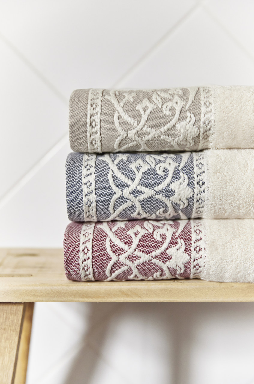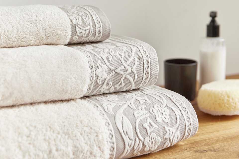 A Torres Novas recuperou várias linhas de toalhas, tapetes e toalhetes, em diversas cores. Mas as toalhas Royale, um clássico da casa, assumem apenas a cor natural – assim designada por ser a do algodão. Afinal, são feitas exclusivamente com essa matéria-prima natural, com uma gramagem de 550 g/m2, apresentando nas extremidades uma barra de fantasia com desenhos inspirados nas paisagens e flores de campo de França, em azul, bege ou bordeaux.