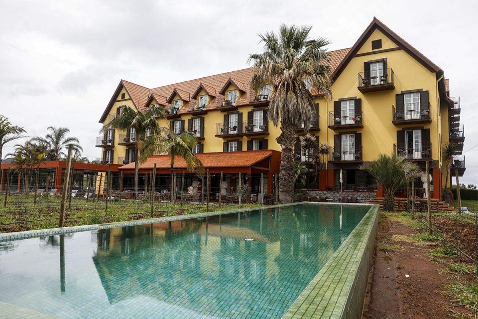 É no topo de uma falésia, na Achada do Gramacho, em Santana, que se ergue este quatro estrelas rodeado de vinhas – ou não estivesse a propriedade de cinco hectares em que se insere dedicada, em parte, à viticultura. O hotel tem uma adega que recebe provas de vinho Madeira, duas piscinas (uma delas entre videiras, aquecida com painéis solares), sauna, sala de fitness, parque infantil e outras valências. Foi remodelado pouco antes de estalar a pandemia, sendo a ala nova composta por 20 quartos com vista oceânica. No total, há 65, de diferentes tipologias, e duas villas.