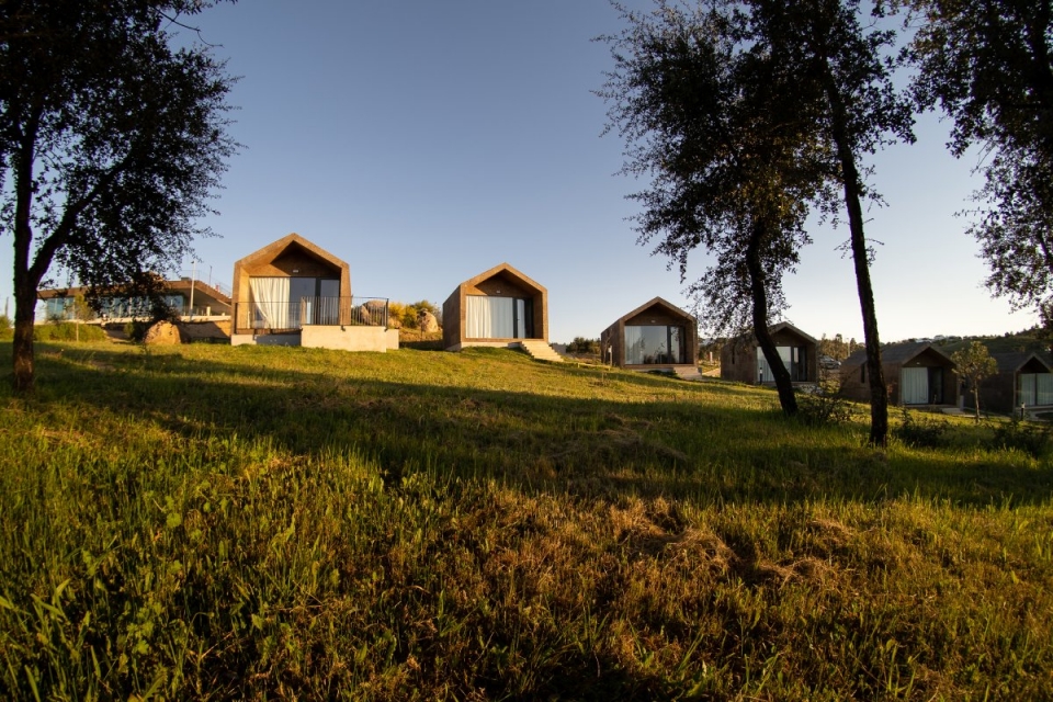 Desta forma, foram criadas 12 tendas de glamping e dez cork shelters (abrigos de cortiça), direcionados sobretudo para famílias e grupos de amigos. As tendas, que ali oferecem todas as comodidades de um quarto de hotel, dividem-se nas tipologias “tenda familiar” (com uma cama de casal e um beliche), “tenda amigos” (com quatro camas individuais) e “escapadinha romântica” (com uma cama redonda voltada para a vinha). Todas têm instalações sanitárias privativas, ar condicionado, televisão, minibar, cofre, chaleira e wi-fi. Já os cork shelters são uma espécie de bungalows para duas, quatro ou oito pessoas, onde também existe uma área mais convivial, com mesa e cadeiras.