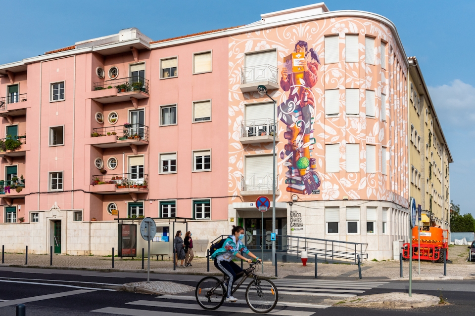 Já no verão, o chão em redor do Mercado de Arroios ganhou tons garridos, com os animais e padrões coloridos pintados pelo Colectivo Artístico Boa Hora, no lugar onde antes estavam carros estacionados. Também este ano, a fachada da biblioteca Manoel Chaves Caminha, na Avenida Rio de Janeiro, Alvalade, ficou pintada com uma rapariga envolta em livros, um manjerico e um elétrico, numa homenagem à “Lisboa Menina e Moça” de Carlos do Carmo, pelas mãos de Mário Belém.