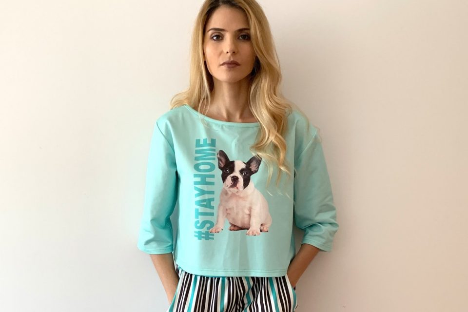 Em jeito de brincadeira, Kristine escreveu no Facebook que só criando linhas de homewear ela e os colegas de profissão poderiam sobreviver a esta crise. Depois pensou nisso mais a sério e decidiu levar a ideia avante. Afinal, nesta fase de necessária reclusão, não tinha vontade de se arranjar muito, calçar collants e sapatos; queria andar confortável, sem ser de pijama. E, como ela, outras mulheres, assumiu. Em poucos dias, criou então “uma linha de homewear confortável e fashion”, batizada com as palavras de ordem deste tempo.