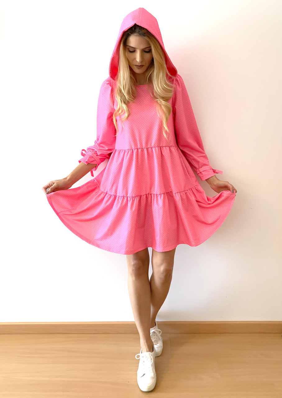 Stay Home é mensagem que surge mesmo impressa em algumas peças, com a preocupação de ficar disfarçada mais tarde, quando pudermos circular livremente pelas ruas, porque o objetivo é que tenham vida para lá da quarentena, frisa Kristine. Por exemplo, o vestido-t-shirt com micro lantejoulas, de estilo sporty-chic, tem stay home escrito nas costas, num sítio que fica coberto pelo capuz.