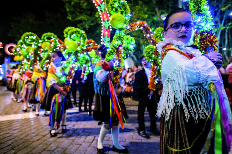A segunda-feira, feriado municipal, é dia da procissão em honra do padroeiro, que sairá da Igreja Matriz pelas 17h00. Maria José Pontes veste as crianças desde 1961. “O grande problema hoje é arranjar meninos e meninas, mas temos conseguido”, explica à Evasões. A acompanhar os andores dos três santos populares seguem entre 50 a 70 crianças em quadros que retratam a vida de S. João. O dia termina com um evento único: a “ida à praia”. Pessoas de mãos dadas seguem em grupos ao som da música dos dois ranchos a cantar e a dançar até à frente marítima da cidade. O cortejo, para muitos, termina com um banho nas águas frias do Atlântico.