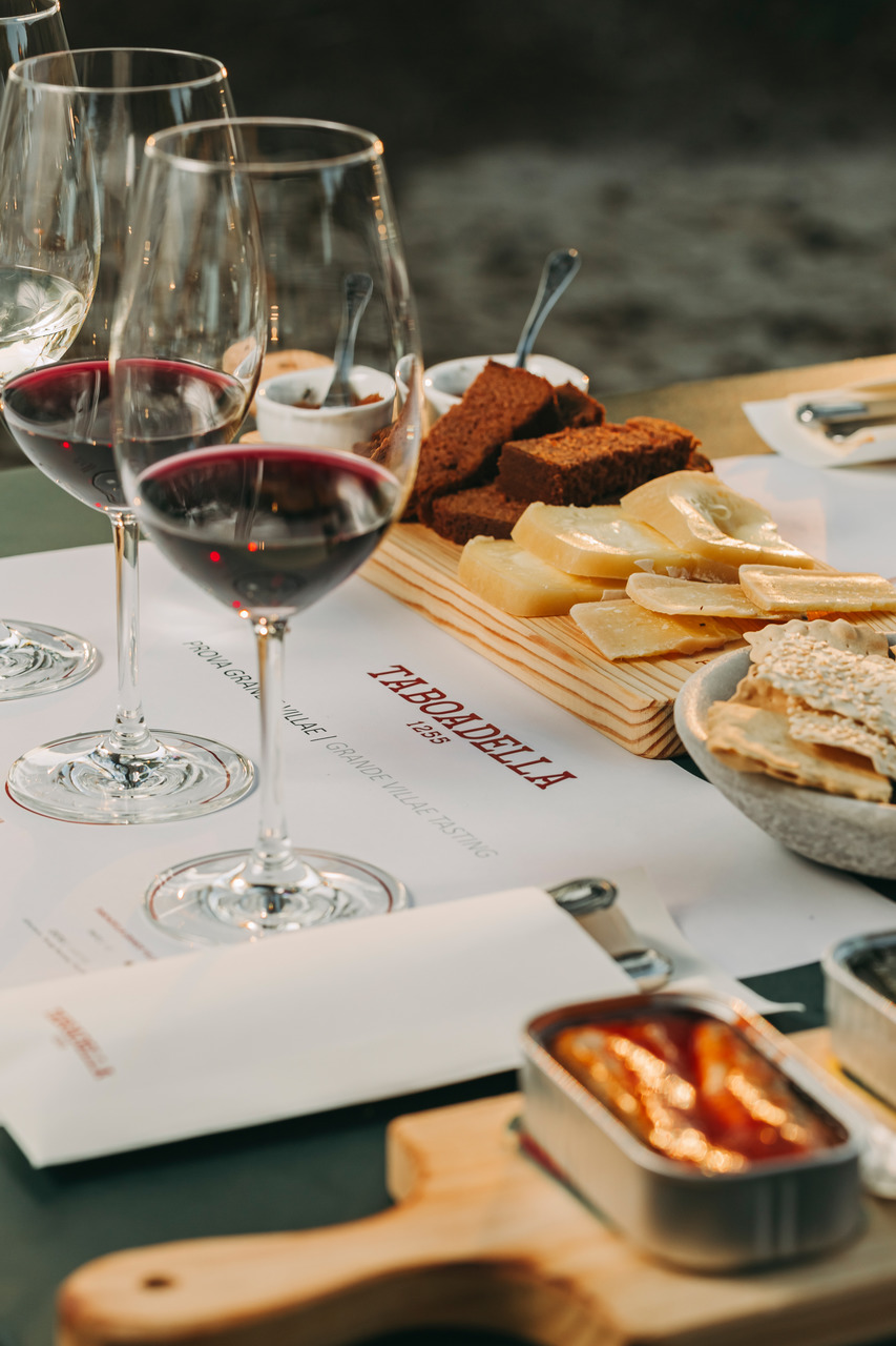 A adega de arquitetura moderna, projetada por Carlos Castanheira, pretende estar em ligação com a natureza em redor, daí a opção por materiais como a madeira, a cortiça e o granito. Rodrigo Costa, enólogo residente da Taboadella, conta que é formada por duas naves principais: uma de fermentação e outra de contemplação, muito graças ao Barrel Top Walk, um passadiço de madeira elevado que deixa ver, em baixo, a sala das barricas. Por reserva prévia, o espaço também pode receber desde provas de vinhos até brunches com vista, na varanda.