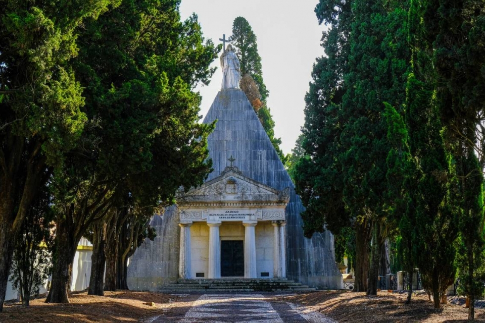 Este é o ponto alto da visita, porém, há muito a descobrir nos 12 hectares do Cemitério dos Prazeres, construído em 1833 para dar resposta à mortandade causada por uma epidemia de “cólera morbus”. O imperativo de saúde pública acabaria por antecipar também a lei que dois anos mais tarde obrigaria à criação de cemitérios públicos fora das malhas urbanas, onde até então os mortos eram enterrados, dentro das igrejas e em seu redor. Em França já se iniciara esse trabalho, tendo o cemitério de Père-Lachaise influenciado em muito Lisboa.