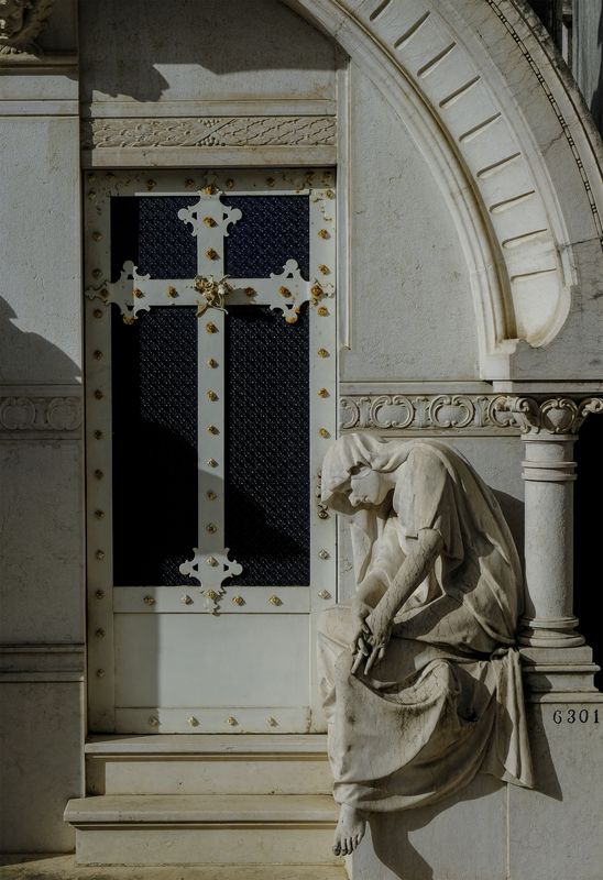 “Os caixões eram feitos para ser vistos, com madeiras nobres pirogravadas e muitas vezes com ferragens como elementos decorativos”, explica, ao apontar para um nicho da cripta de planta quadrangular. A ela só descem os corajosos e curiosos, sempre acompanhados por um guia das visitas ao Cemitério dos Prazeres. De volta à capela no piso térreo, a luz difusa permite ver melhor o cenotáfio em mármore (túmulo vazio) de Alexandre de Sousa Holstein, pai do primeiro duque de Palmela, desenhado pelo escultor neoclássico António Canova.