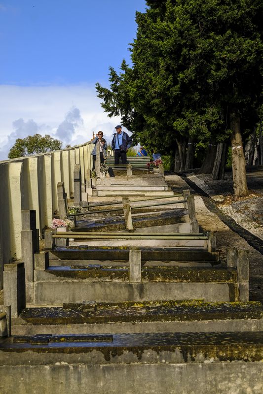 Este é o ponto alto da visita, porém, há muito a descobrir nos 12 hectares do Cemitério dos Prazeres, construído em 1833 para dar resposta à mortandade causada por uma epidemia de “cólera morbus”. O imperativo de saúde pública acabaria por antecipar também a lei que dois anos mais tarde obrigaria à criação de cemitérios públicos fora das malhas urbanas, onde até então os mortos eram enterrados, dentro das igrejas e em seu redor. Em França já se iniciara esse trabalho, tendo o cemitério de Père-Lachaise influenciado em muito Lisboa.