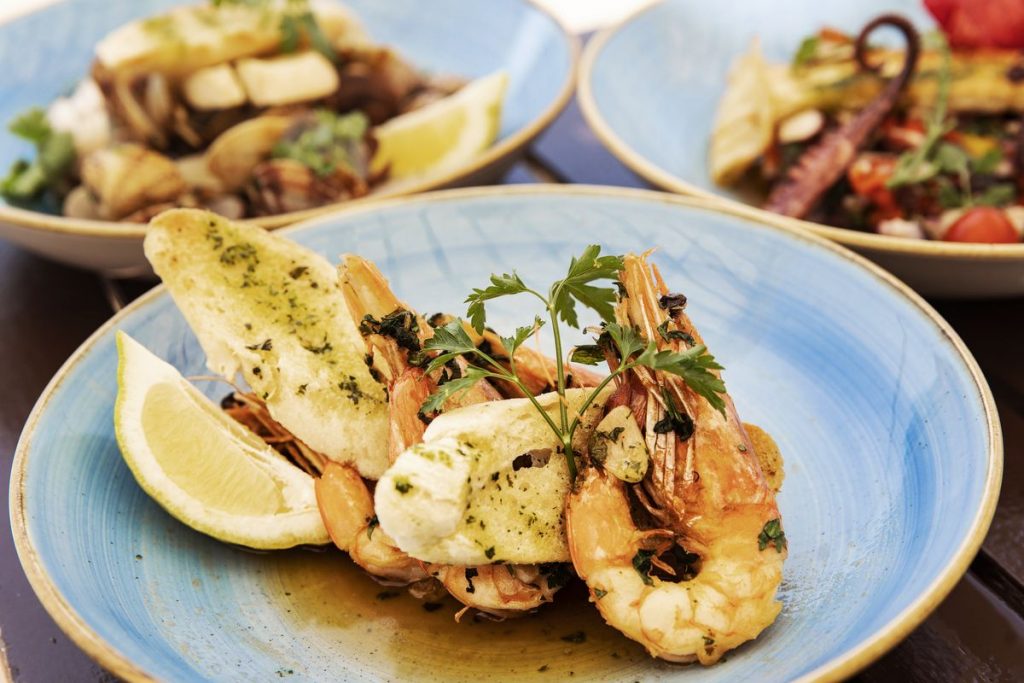 A maresia abre o apetite, e enquanto se olha o mar azul turquesa a enrolar-se na areia, o chef pode preparar amêijoas, camarão salteado, salada de polvo e grelhar uma dourada em carvão de casca de coco, posteriormente escalada e servida com batatas e salada. No copo há cocktails, sangrias e vinho. Tudo somado às sobremesas, estão reunidas condições para atirar o corpo para uma espreguiçadeira a tarde toda. Espaço é o que não falta, seja no areal quase privado, seja no relvado coberto pelos pinheiros mansos que explicam parte do nome Pine Cliffs Resort.