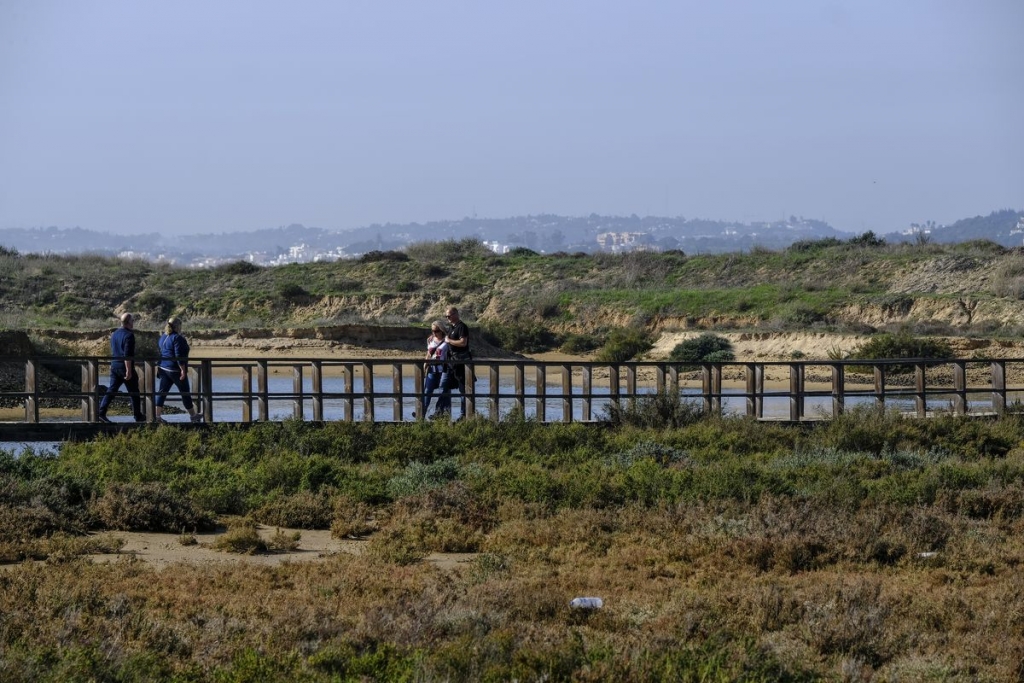 Quem caminhar pelo passadiço da Ria de Alvor e vir pessoas a usar chapéu de abas, t-shirt, calções e óculos de sol, poderia dizer que o verão tinha chegado mais cedo ao Algarve. A verdade é que os termómetros marcam 17 graus Celsius em janeiro e o sol dá uma sensação de maior calor. Não é de estranhar, por isso, que tantas pessoas elejam este passadiço de madeira de 4,7 quilómetros para caminhar, andar de bicicleta, passear com os filhos, dar soltura aos cães ou simplesmente apreciar a paisagem.