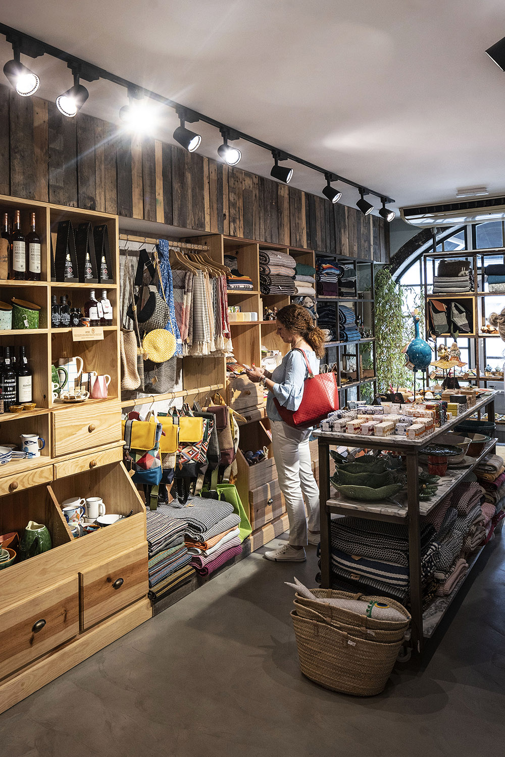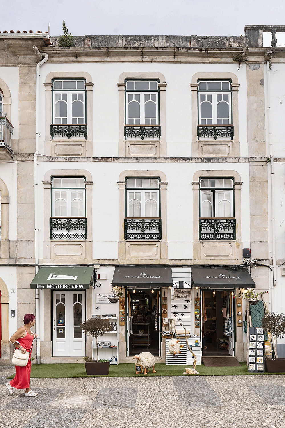 E ali cabe, afinal, o artesanato de todo o país. Mas destacam-se sobretudo as camisolas que mandou desenhar ao ilustrador Luís Taklim, evocando as gárgulas do Mosteiro, ou a própria fachada. “Têm feito um sucesso”, conta à Evasões, numa manhã de nevoeiro que afastou muitos turistas das praias, enchendo a vila de (ainda mais) movimento do que é habitual. As esplanadas da Praça Mouzinho de Albuquerque estão lotadas, e em frente ao Mosteiro muitas famílias aproveitam o imenso espaço para deixar os mais pequenos andar livremente de bicicleta, trotineta ou patins, numa simbiose perfeita de dois mundos, junto à estátua de Nuno Álvares Pereira.