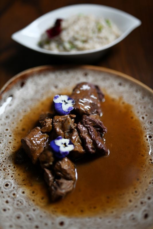 E de sobremesas? Há sericaia com ameixa de Elvas, leite creme de poejo, mousse de chocolate e farófias – tudo caseiro, pois o negócio também é uma pastelaria e padaria de fabrico próprio. “De vez em quando, temos borrego”, partilha Célia. Numa terra que se autoproclama “a capital do borrego”, tanto a nível económico como a nível turístico, esta carne, tão tenra e saborosa, nunca pode faltar à mesa.