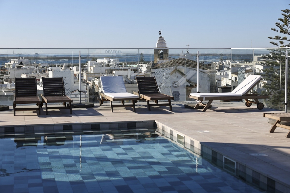 Ainda assim, o ex-líbris está no piso mais alto: um terraço com bar e uma piscina exterior rodeada de espreguiçadeiras. Enquanto se saboreiam os cocktails de autor da casa (como o Formosa Cocktail, com gin, melancia, lima e hortelã), é possível avistar-se, de forma desafogada, o centro histórico, a ria, a serra algarvia e as ilhas mais próximas, como a Culatra e a Armona.