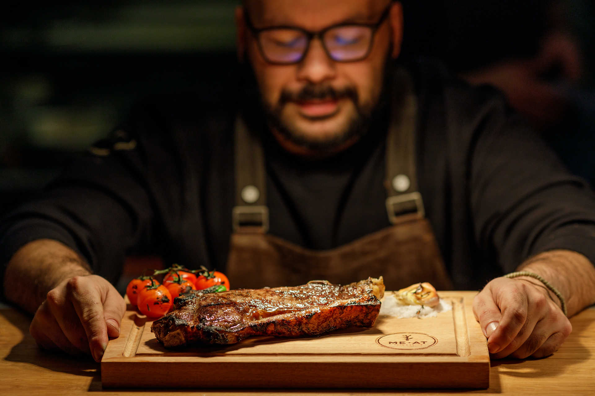 O Me.at, um projeto de quatro famalicenses decididos em trazer para a cidade um espaço inovador, junta uma carta de cortes nobres – e também algumas alternativas à base de peixe ou vegetais -, uma garrafeira de excelência e um bar focado nos cocktails de autor, num ambiente descontraído e, acima de tudo, aprazível ao olhar. “Queríamos criar um lugar bonito no centro da cidade e dada a própria história do edifício fazia sentido usarmos materiais como o ferro e a madeira, que criassem esta atmosfera citadina e industrial”, explica João Fernandes, um dos sócios do restaurante.