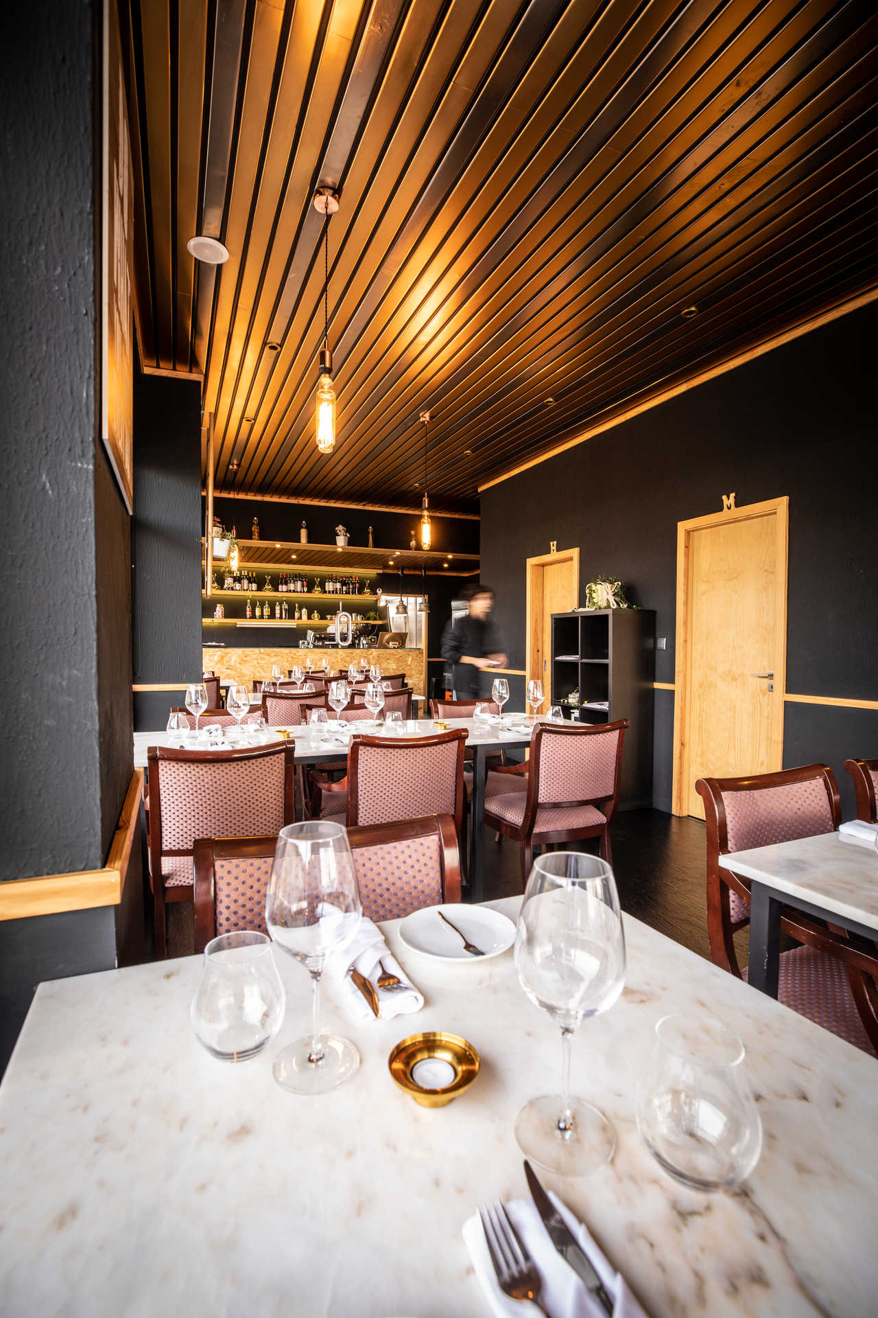 À decoração juntam-se ainda outros elementos naturais, como a árvore ao centro da sala e um chamativo balcão em ónix. Da cozinha, aberta para a sala, saem peças menos comuns, como o New York Steak, diretamente do carvão para a mesa. E o bar, aberto até noite alta, garante copo cheio a quem queira continuar a conversa para lá do jantar. A intenção é “ter as duas experiências no mesmo sítio, sem ter de ir para Braga ou para o Porto”, remata João.