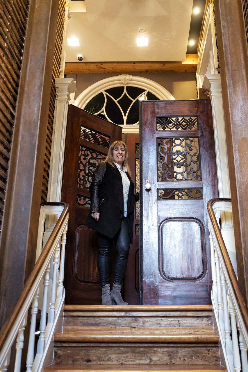 - Vitória Abreu mostra os detalhes da arquitetura original da casa. (Fotografias: Maria João Gala/GI)
