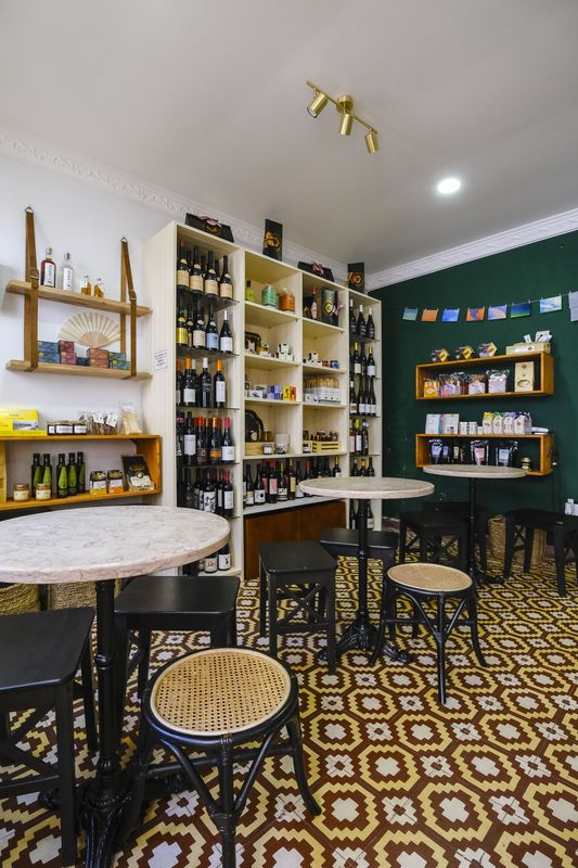 O balcão com rodas permite transformar a sala num auditório, seja para acolher jantares com fado ou aulas de ukulele e cante alentejano. “É a extensão da nossa casa, onde recebemos amigos”, diz Francisco. A mercearia, por seu turno, permite comprar produtos do menu, como azeites, compotas, conservas, biscoitos, frutos secos, mel, bolachas e vinhos. Para picar há, por exemplo, tábuas de queijos e enchidos, sanduíche de cozido, tostas e conservas. Aos domingos, servem-se sopas à base de pão, tipicamente alentejanas.