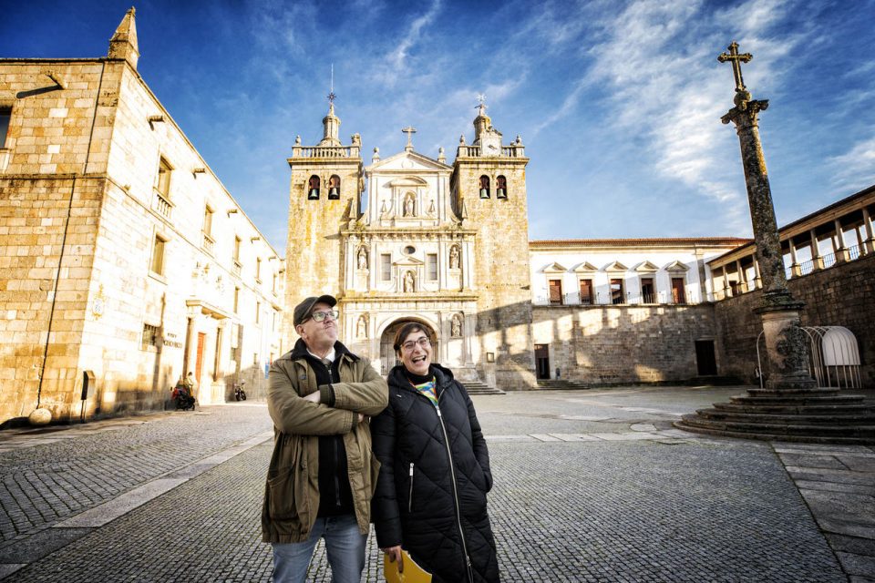 A Catedral de Santa Maria de Viseu, conhecida simplesmente como Sé, concentra 900 anos de história. Fátima Costa apresenta-a como “um palimpsesto de construções”, um sítio onde a história surge por camadas, porque tem elementos de todos os períodos artísticos e estilísticos, desde o século XII. Avista-se, por exemplo, aquele que foi o primeiro claustro renascentista do país (na fotografia). A fachada é do século XVII, porque a original, manuelina, caiu na sequência de uma tempestade. No interior, o barroco domina os altares, enquanto a abóbada de nós remete para o manuelino. Subindo, chega-se ao Museu do Tesouro. Aí ficam também o coro alto e o Passeio dos Cónegos, uma varanda de onde se vê toda a cidade, e até a Serra da Estrela, em dias limpos.